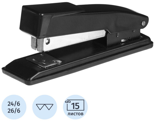 15 листов, скобы №24/6, 26/6, черный