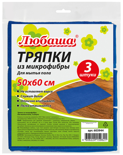 Тряпка для мытья пола из микрофибры ЛЮБАША Плюс