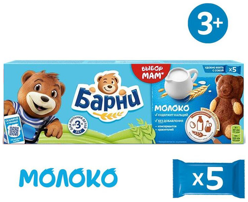 Медвежонок Барни бисквитное с молочной начинкой, 150 г