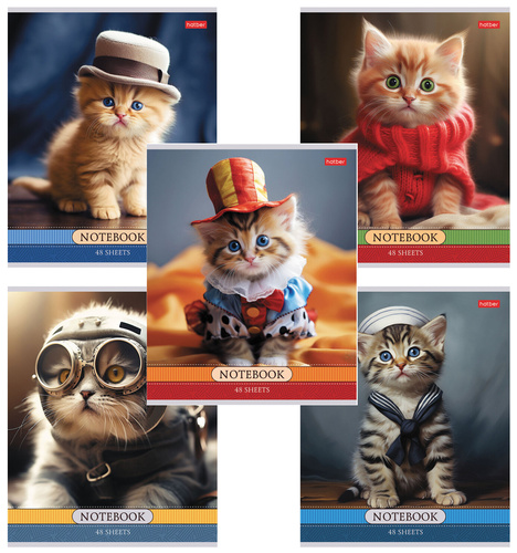 Тетрадь на скрепке с пластиковой обложкой HATBER Кот-самурай