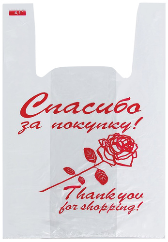28+14х50 см, 12 мкм, "Спасибо за покупку" (Роза), 200 шт/уп, ПНД