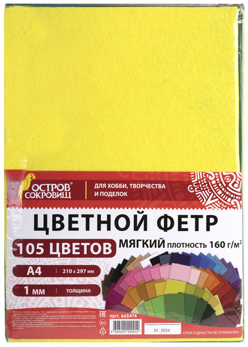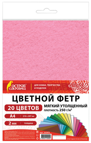 Цветной фетр, мягкий ОСТРОВ СОКРОВИЩ
