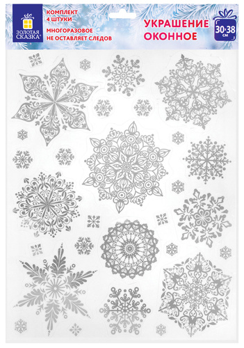116 Снежинок, 4 шт., 30х38 см, металлик, серебро