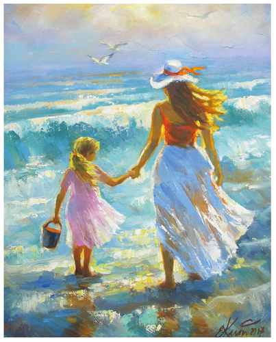 "На прогулке с мамой", на подрамнике, акрил