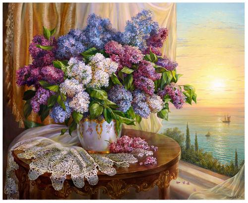 "Букет сирени", на подрамнике, акрил, кисти