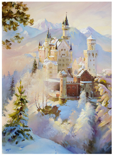 "Замок Нойшванштайн Бавария", на подрамнике, акрил, кисти