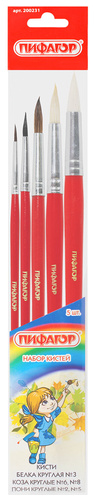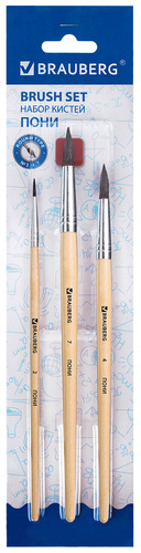 Кисти НАБОР 5 шт. (БЕЛКА круглая № 3; КОЗА круглые №6,8; ПОНИ круглые №2,5), BRAUBERG KIDS, 201080