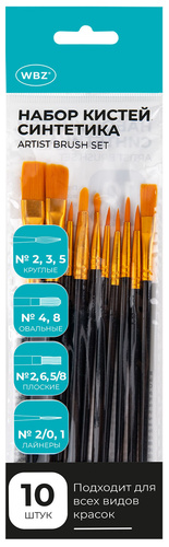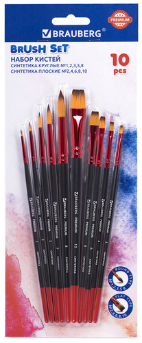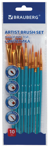 Кисти синтетика BRAUBERG набор 10 штук
