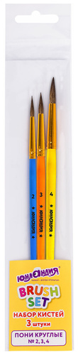 Кисти ПОНИ, БЕЛКА набор 5 шт. (пони круглые 2, 3, 5 белка круглые 6, 8) блистер, ЮНЛАНДИЯ, 201070