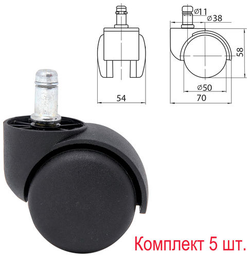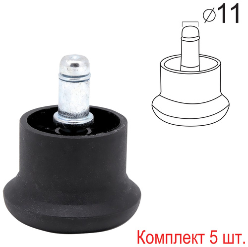 прорезиненные, хром, d 60 мм, 5 шт/уп, шток d 11 мм, черные