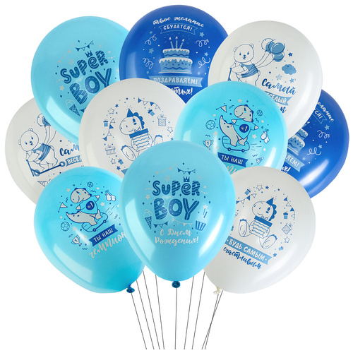 30 см с рисунком "Для мальчика", комплект 10 штук, ассорти