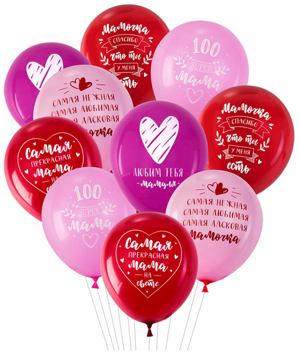 30 см с рисунком "Для мамы", комплект 10 штук, ассорти
