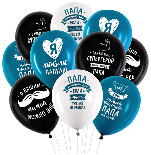 30 см с рисунком "Для папы", комплект 10 штук, ассорти