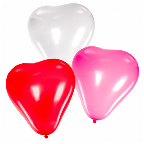 10" (25 см), комплект 50 штук, 3 цвета, в форме сердца, пакет