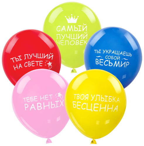 12" (30 см), комплект 5 штук, ассорти 5 цветов, с рисунком "Комплименты", пакет