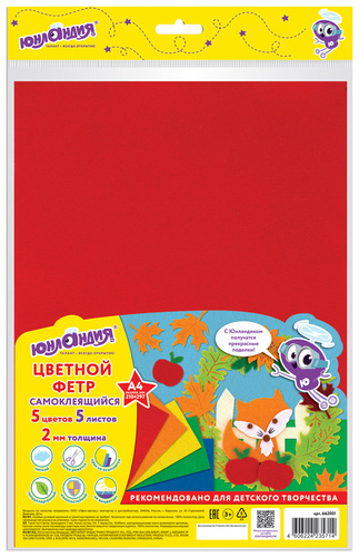 А4, 2 мм, 5 листов, 5 цветов, яркие цвета, самоклеящаяся