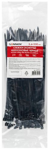 нейлоновые, 3,6 мм х 200 мм, комплект 100 шт., черные, европодвес