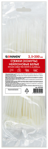 нейлоновые, 3,6 мм х 250 мм, комплект 100 шт., белые, европодвес