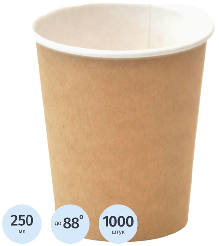 Стаканы бумажные однослойные TASTEQUALITY, коричневые