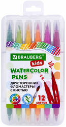 Набор фломастеров двусторонних с кистью BRAUBERG KIDS