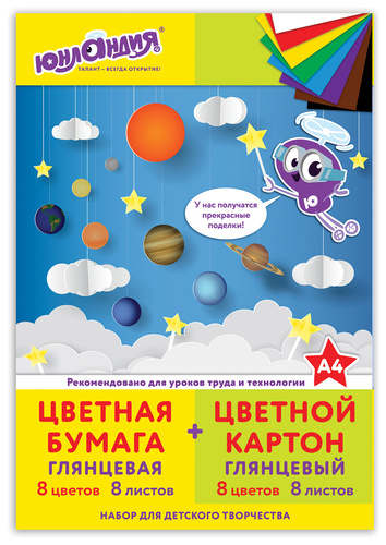 "Космическое приключение", 8 листов бумаги, 10 листов картона, А4, мелованный, в папке