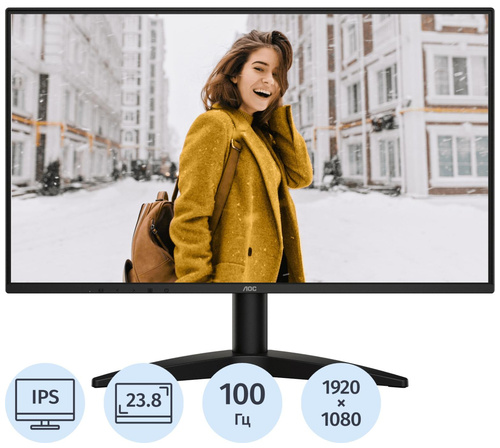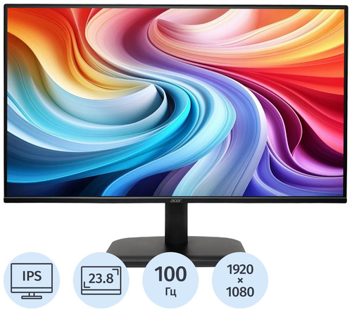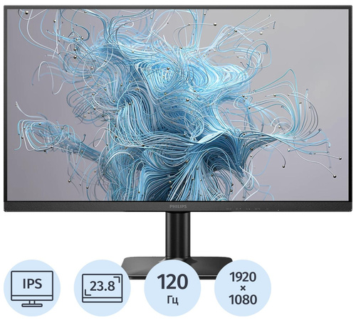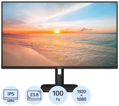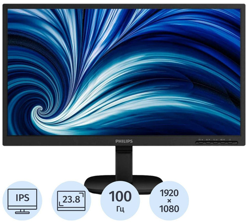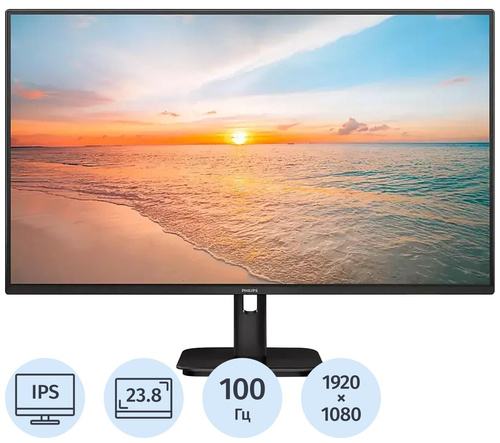 23,8", черный, (FHD,IPS,100Hz,250cd,HDMI,DP,VGA,USB)