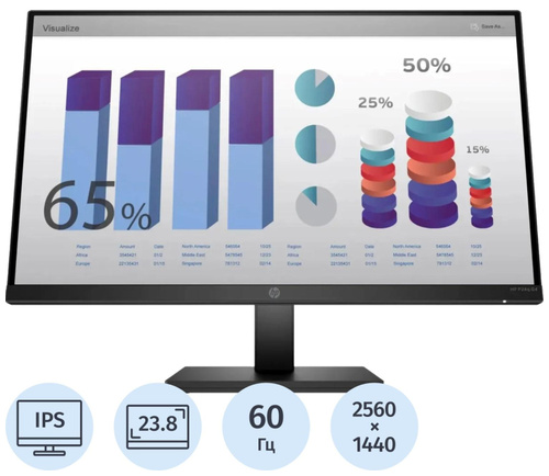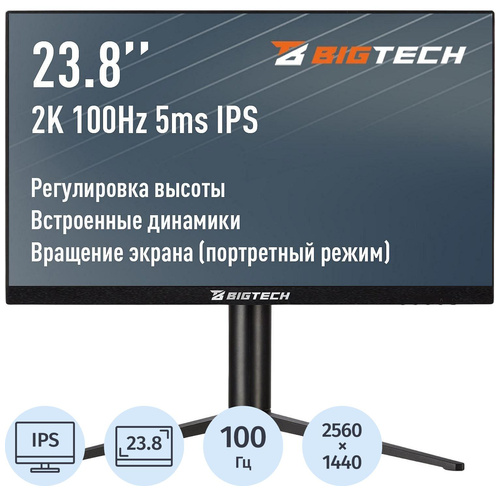 23,8", черный, (IPS,2K,100 Гц,250,3 Вт,VESA,HAS,DP,HDMI)