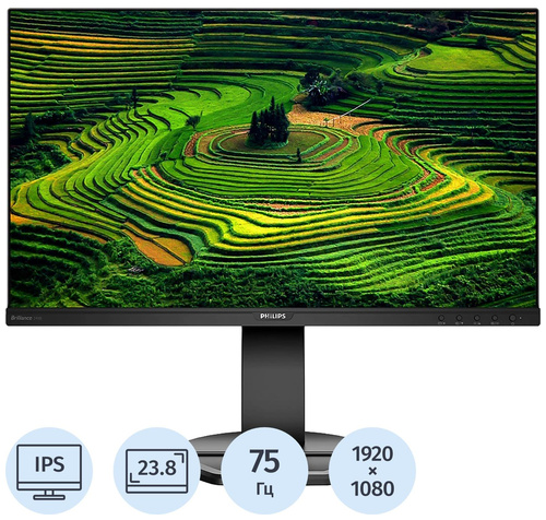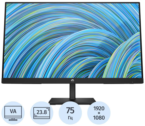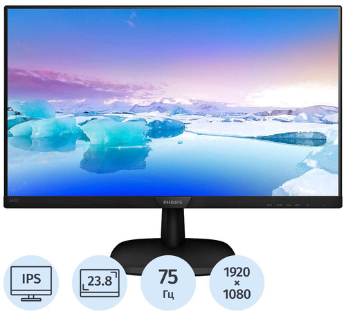 23,8", черный, (IPS,FHD,75Hz,250cd,4ms,VGA,DVI,HDMI)