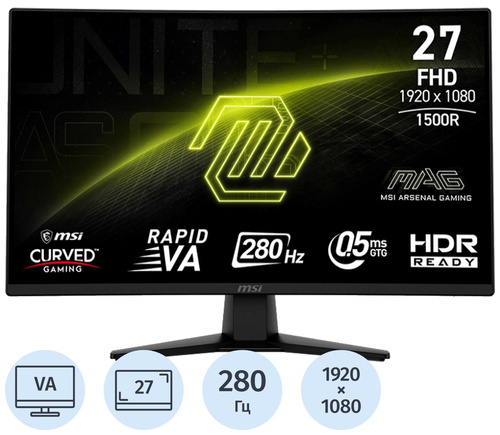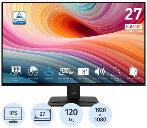 27", черный, (FHD, IPS, HDMI, DP, VGA, Tilt, 120HZ)
