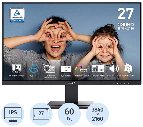 27", черный, (4K,UHD,IPS,60Hz,300cd,5ms,HDMI,DP)