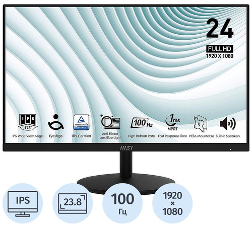 23.8", черный, (FHD,IPS,100Hz,250cd,1ms,HDMI)