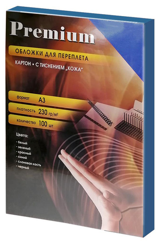 А4, синяя, 230 г/м², тиснение под кожу, 100 шт/уп