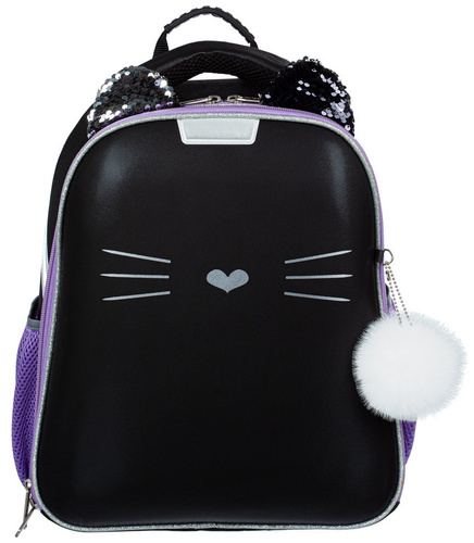 "Kitty black", черный, экокожа, 28x15x36 мм, 2 отделения, 4 кармана, светоотражающие элементы, эргономичная спинка