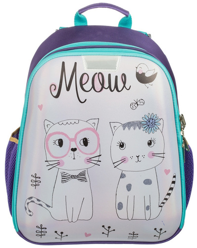 "Meow", фиолетовый, экокожа, 28x15x36 мм, 2 отделения, 3 кармана, светоотражающие элементы, эргономичная спинка
