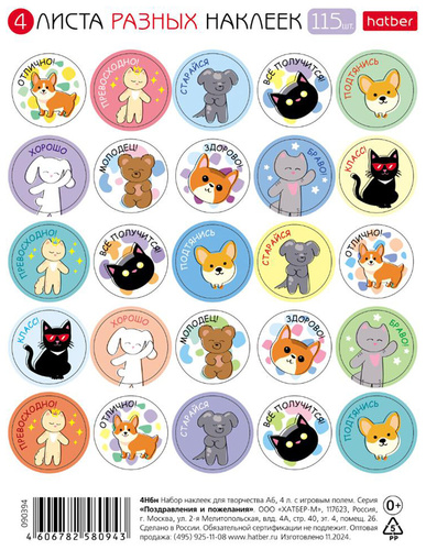Наклейки предметные для маркировки школьных принадлежностей HATBER