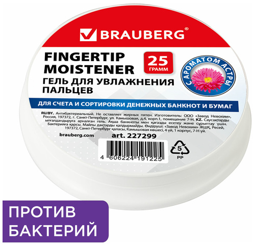 Гель для увлажнения пальцев антибактериальный BRAUBERG