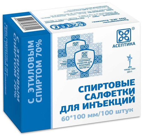 Салфетки спиртовые для инъекций Асептика 56x65 мм