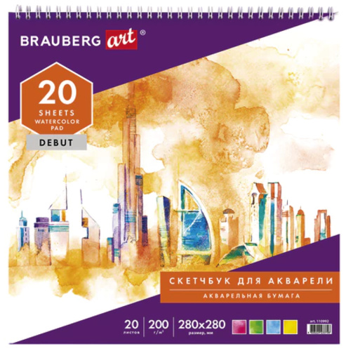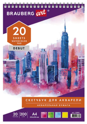 Скетчбук акварельная белая бумага BRAUBERG ART DEBUT