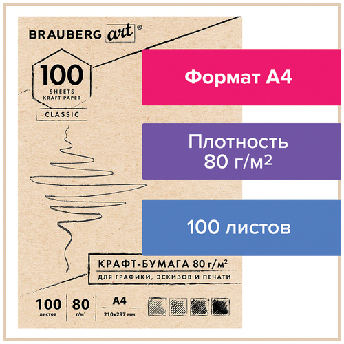 Крафт-бумага для графики эскизов печати BRAUBERG ART CLASSIC