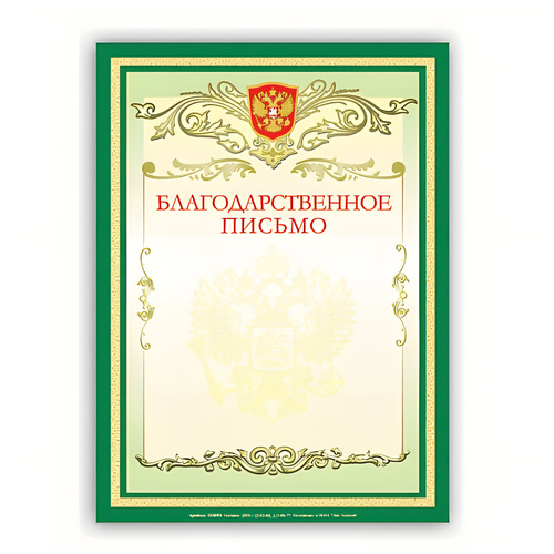 | 990-803 | "Благодарственное письмо" А4, мелованный картон, зелена, 80 шт/уп | шт |