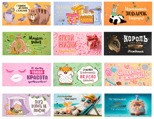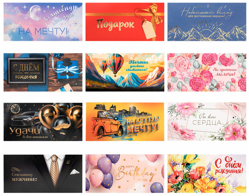 | 364-279 | набор (3 открытки 10 х 15 см с поздравительным текстом + 3 крафтовых конверта ) | набор |