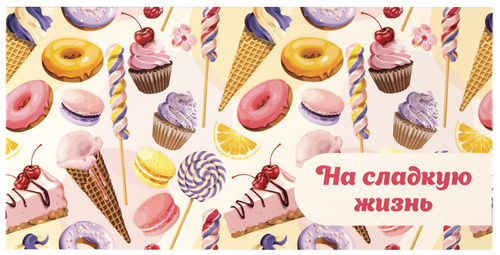 | 773-885 | "НА СЛАДКУЮ ЖИЗНЬ!", Десерт, 166х82 мм, блестки, 50 шт/уп | шт |