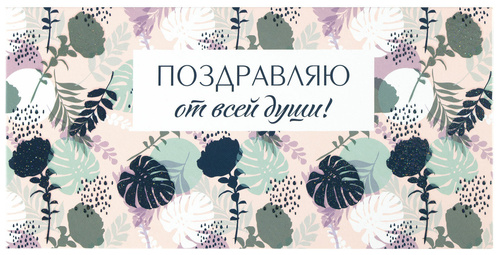 | 117-117 | "ПОЗДРАВЛЯЮ ОТ ВСЕЙ ДУШИ!", Цветы, 166х82 мм, блестки, 50 шт/уп | шт |