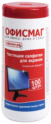 Чистящие салфетки для экранов, стекол и пластика универсальные ОФИСМАГ