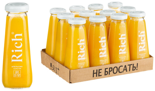 0,2 л, апельсин, подходит для детского питания, стеклянная бутылка, 12 шт/уп
