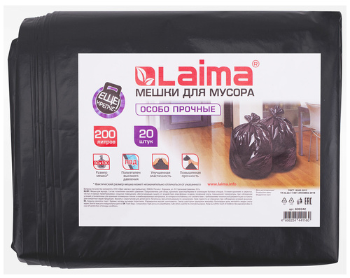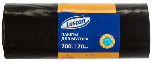 200 л, 90х130 см, 80 мкм, черные, 20 шт/рул