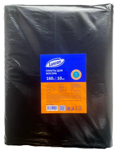 160 л, 90х120 см, 65 мкм, черные, 10 шт/уп