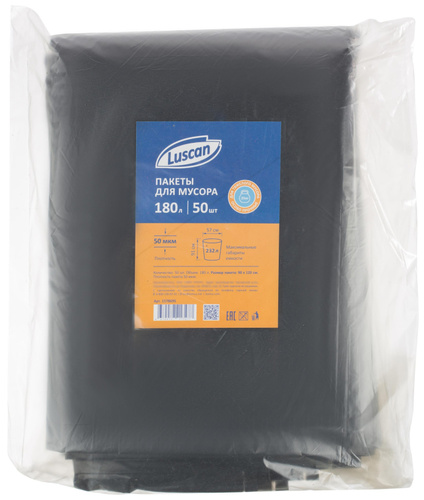 180 л, 90х120 см, 50 мкм, черные, 50 шт/уп