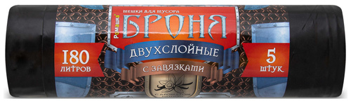 180 л, 90х110 см, 55 мкм, черные, 5 шт/рул, с завязками