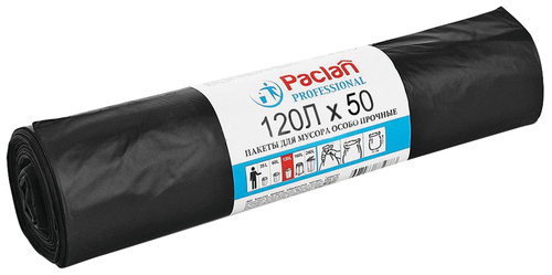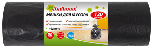 120 л, 62х102 см, 25 мкм, черные, 50 шт/рул